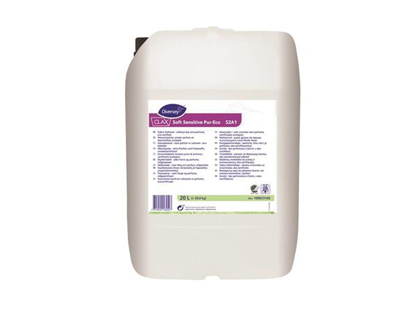 Clax Soft Sensitive Pur-Eco to eko-certyfikowany płyn zmiękczający tkaniny o specjalnej formule przeznaczony do użytku komercyjnego oraz pralni przemysłowych. Preparat przeznaczony jest do aplikacji na większości rodzajów tkanin, dozowany ręcznie lub automatycznie.