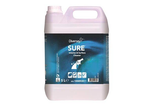 SURE Interior & Surface Cleaner jest częścią unikalnej gamy produktów opartych na składnikach pochodzenia roślinnego, w 100% biodegradowalnych, przeznaczonych do codziennego, profesjonalnego utrzymania czystości. SURE Interior & Surface Cleaner jest skoncentrowanym uniwersalnym preparatem czyszczącym do wszystkich twardych powierzchni (także w pomieszczeniach obróbki żywności) i może być stosowany do czyszczenia podłóg, ścian, sufitów i różnego wyposażenia.