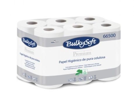 - Papier toaletowy jumbo mini BulkySoft Premium, 2 warstwy, kolor biały, celuloza, długość 145m, 12 rolek/op