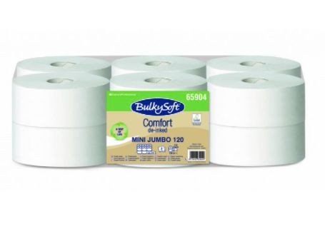 Papier toaletowy jumbo mini BulkySoft Comfort DE-inked, 2 warstwy, kolor biały, celuloza z recyklingu, długość roli 120m, 12 rolek/op.