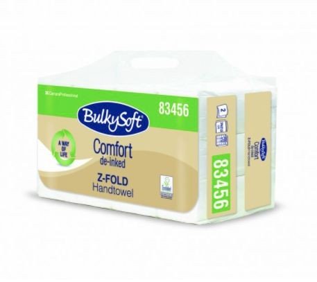 Ręcznik papierowy BulkySoft Comfort De-inked, składany typu Z 3 panelowyl, 2 warstwy, 24×21,5 cm, kolor biały, celuloza z recyklingu, 2400 szt./op.