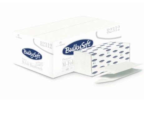 Ręcznik papierowy BulkySoft Premium składany typu M-Fold ULTRA 4 panelowy, 3 warstwy, kolor biały, celuloza, 2500 szt./kart.