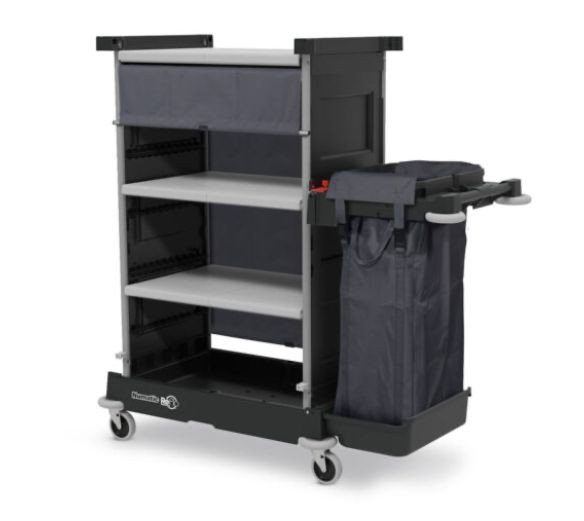 Wielofunkcyjny wózek do obsługi hotelowej NKT1Rangielskiej marki NUMATIC przeznaczony jest do transportu i przechowywania czystej oraz brudnej pościeli, ręczników a także galanterii hotelowej. Precyzyjne, skrętne koła oraz ruchome odbojniki zapewniają doskonałą pracę wózka również w niewielkich pomieszczeniach o ograniczonej dostępności np. w wąskich korytarzach, windach czy na podjazdach lub rampach.