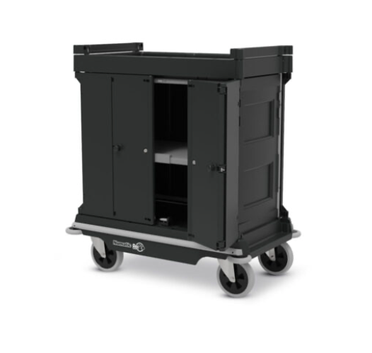 Wielofunkcyjny wózek do obsługi hotelowej NKU30RHFangielskiej marki NUMATIC przeznaczony jest do transportu i przechowywania pościeli, ręczników a także galanterii hotelowej. Wnętrze wózka jest zamykane sztywnymi drzwiczkami na klucz. Duże, skrętne koła zapewniają doskonałą pracę wózka również w niewielkich pomieszczeniach o ograniczonej dostępności np. w wąskich korytarzach czy na podjazdach lub rampach.