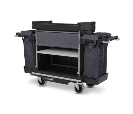 Wielofunkcyjny wózek do obsługi hotelowej NKU32RFFangielskiej marki NUMATIC przeznaczony jest do transportu i przechowywania pościeli, ręczników a także galanterii hotelowej. Duże, skrętne koła zapewniają doskonałą pracę wózka również w niewielkich pomieszczeniach o ograniczonej dostępności np. w wąskich korytarzach czy na podjazdach lub rampach.Worki (2x100L) ulokowane po bokach wózka służą do transportu brudnej pościeli.
