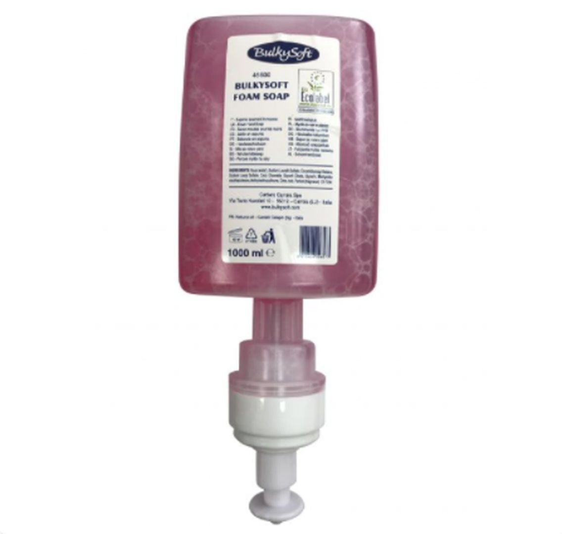 Mydło w piance Bulkysoft o pojemności 1l. Z 1l uzyskujemy do 2500 dawek mydła w formie pianki.