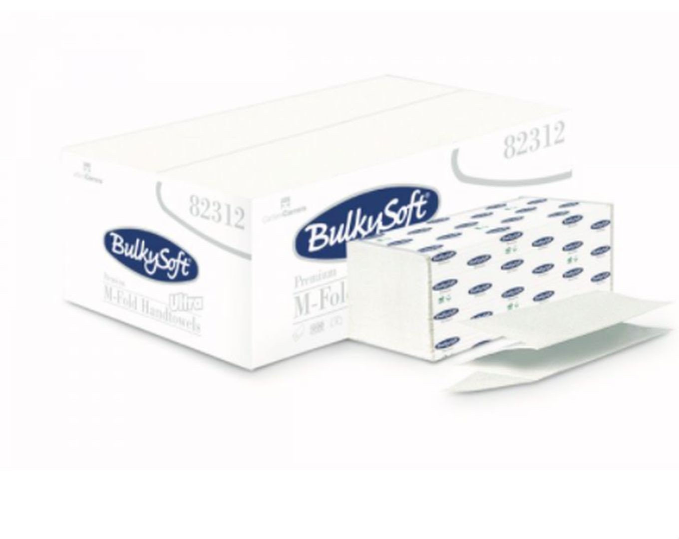 Ręcznik papierowy BulkySoft Premium składany typu M-Fold ULTRA 4 panelowy, 2 warstwy, kolor biały, celuloza 3125 szt./kart.