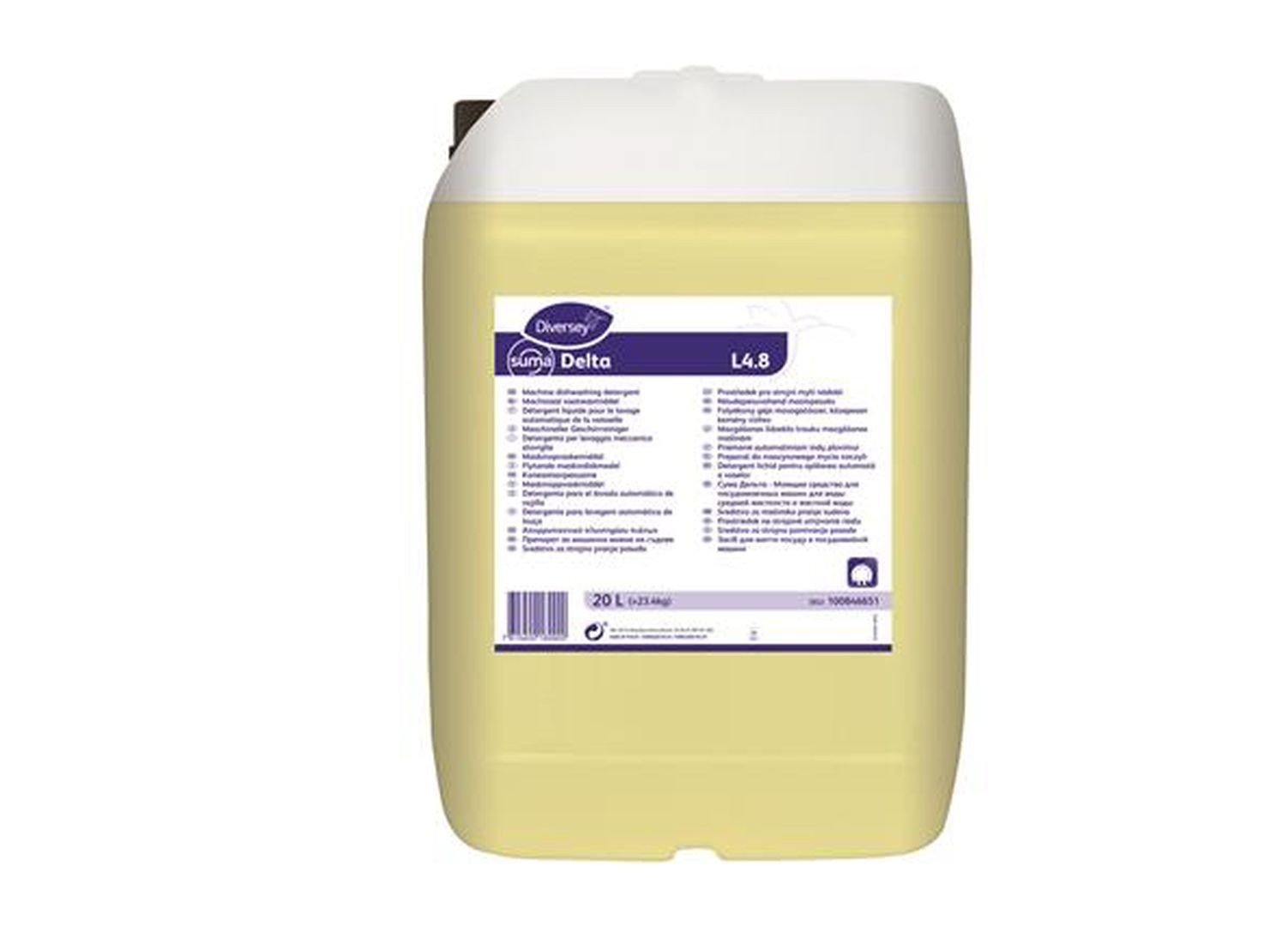 Suma Delta L4.8 jest płynnym preparatem przeznaczonym do maszynowego mycia naczyń. Skutecznie usuwa wszelkie zanieczyszczenia organiczne oraz zaschnięte i silnie przywarte do mytych powierzchni. Związki wiążące jony twardości wody wspomagają proces mycia oraz zapobiegają ich osadzaniu się na mytych powierzchniach, dzięki czemu preparat nadaje się do wody o różnej twardości w tym również wody twardej. Suma Delta L4.8 umożliwia bardzo szybkie i skuteczne mycie nawet mocno zabrudzonych powierzchni naczyń (zaschnięte, silnie przywarte resztki żywności oraz osady z kawy i herbaty). Może być stosowany, przy przestrzeganiu przepisów użytkowania, do mycia naczyń wykonanych z porcelany, szkła, stali szlachetnej i tworzyw sztucznych. Nadaje się do mycia naczyń wykonanych z ornaminy/melaminy. Nie nadaje się do mycia naczyń miedzianych, mosiężnych i aluminiowych.