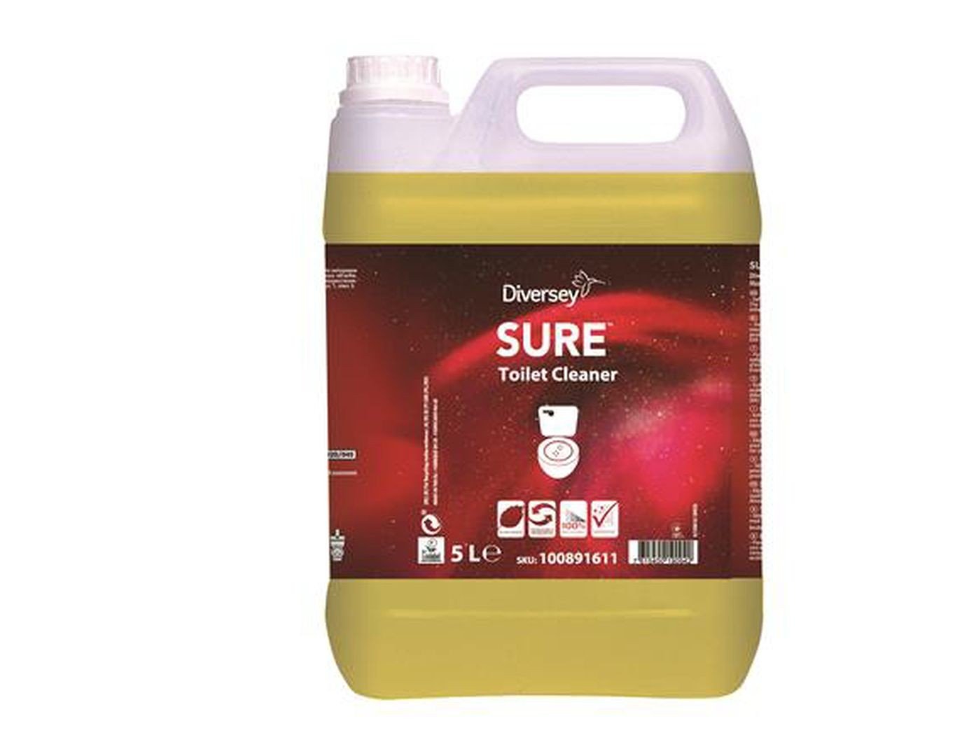SURE Toilet Cleaner jest częścią unikalnej gamy produktów opartych na składnikach pochodzenia roślinnego, w 100% biodegradowalnych, przeznaczonych do codziennego, profesjonalnego utrzymania czystości. SURE Toilet Cleaner jest gotowym do użycia preparatem przeznaczonym do czyszczenia oraz usuwania kamienia i uporczywych plam z muszli klozetowych i pisuarów. Dzięki swej specjalnej formule zapewnia doskonałe rezultaty czyszczenia.