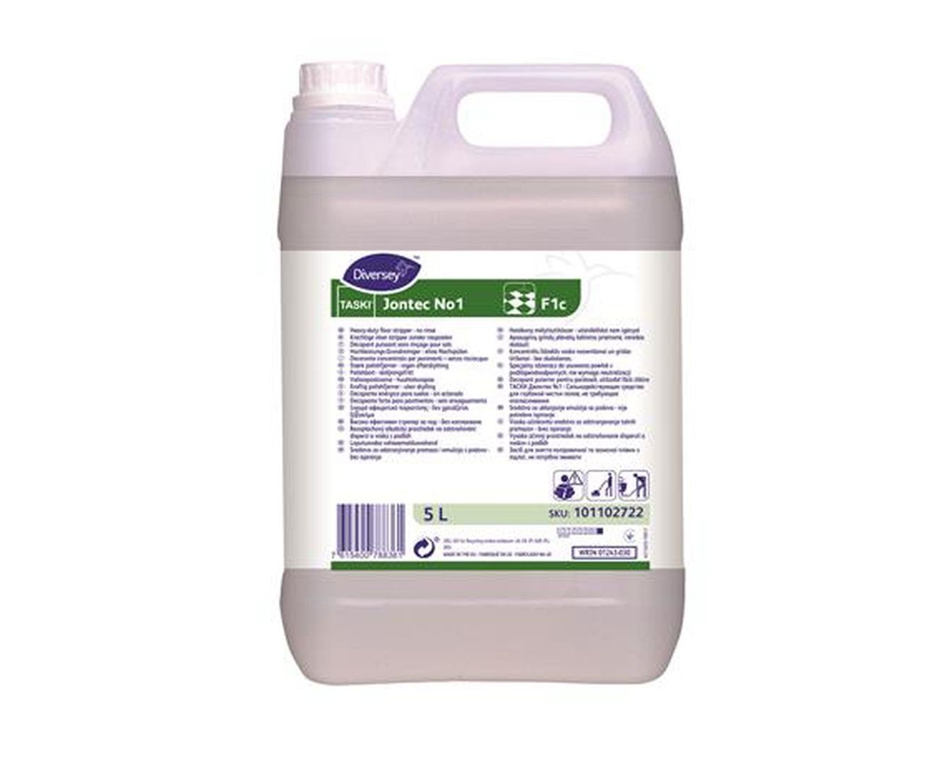 TASKI Jontec No1 to specjalny zdzieracz do usuwania powłok polimerowych i woskowych z podłóg wodoodpornych. Preparat przeznaczony jest do gruntownego czyszczenia podłóg, przed ponownym nałożeniem nowej powłoki. Szybko i skutecznie usuwa warstwy starych powłok z podłóg odpornych na działanie alkaliów, np.: PVC.
