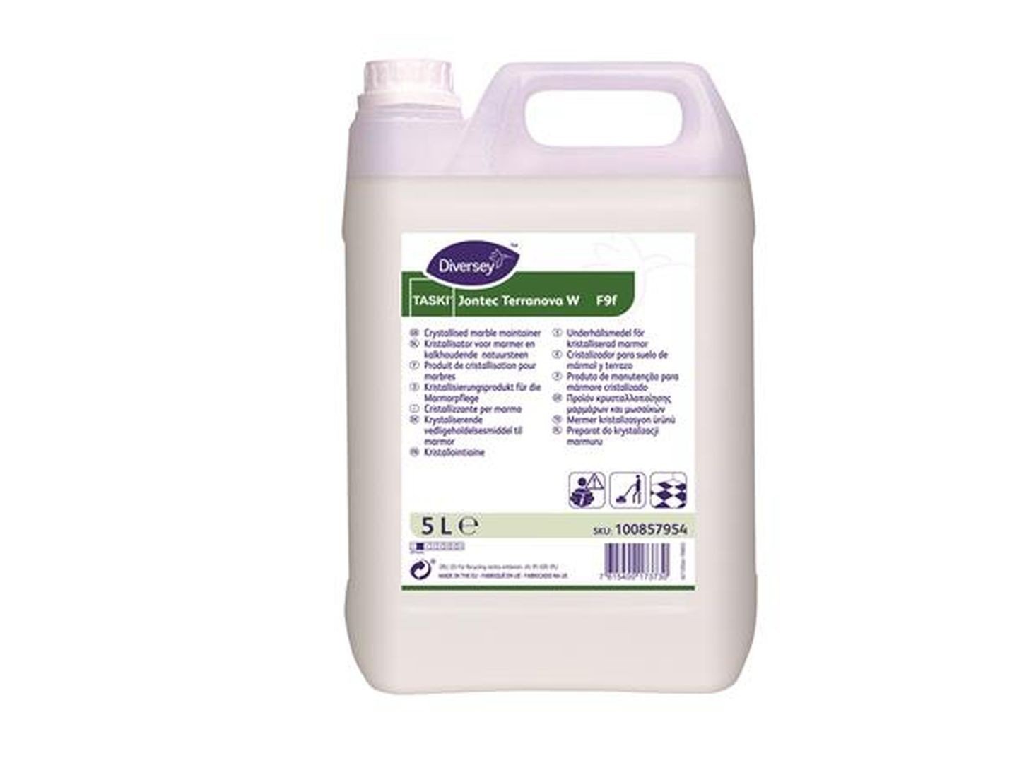 TASKI Jontec Terranova W to preparat przeznaczony do krystalizacji i zabezpieczania podłóg na bazie kamienia wapiennego. Produkt używany w połączeniu z maszyną jednotarczową wyposażoną w specjalny pad stalowy zapewnia doskonały połysk na powierzchniach z marmuru i kamienia wapiennego. Poprzez krystalizację produkt ten zwiększa odporność na ścieranie oraz redukuje wrażliwość na kwasy.