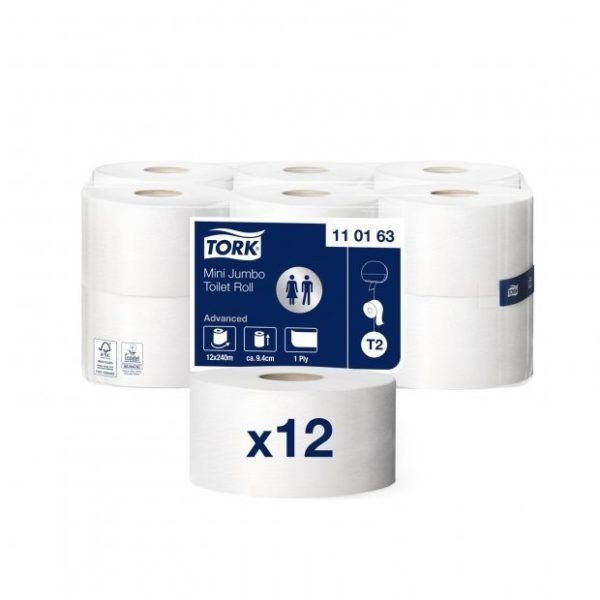 Tork 110163 Papier toaletowy Mini Jumbo, Biały 12szt. 1 warstwa 240m System T2