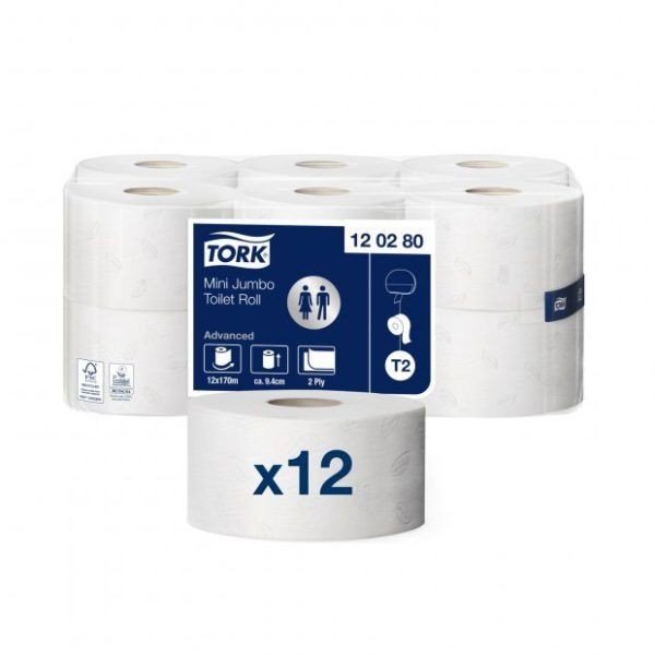 Tork 120280 Papier toaletowy Mini Jumbo, Biały 12szt. 2 warstwy 170m System T2